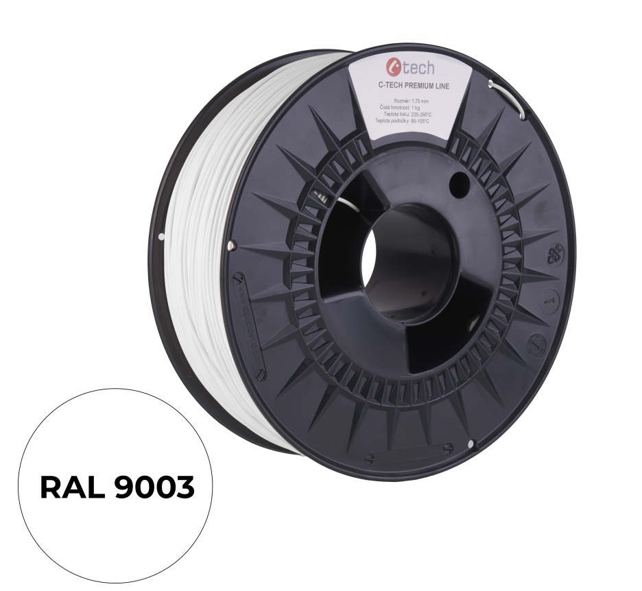 C-TECH tisková struna PREMIUM LINE ( filament ) , ABS, dopravní bílá, 1,75mm, 1kg