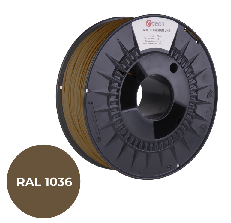 C-TECH tisková struna PREMIUM LINE ( filament ) , PLA, perleťová zlatá, RAL1036, 1,75mm, 1kg
