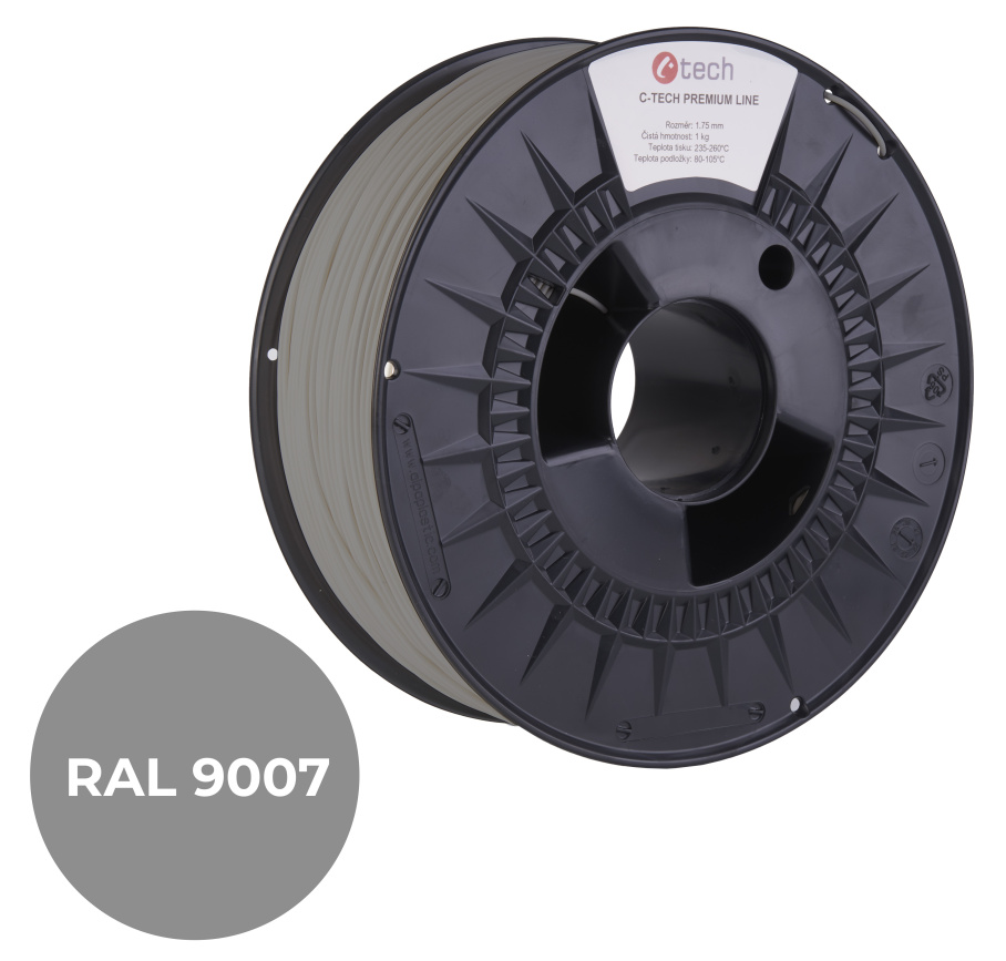 C-TECH tisková struna PREMIUM LINE ( filament ) , PLA, šedý hliník, RAL9007, 1,75mm, 1kg