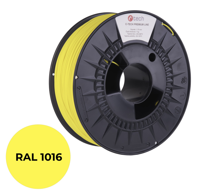 C-TECH tisková struna PREMIUM LINE ( filament ) , PLA, sírová žlutá, RAL1016, 1,75mm, 1kg