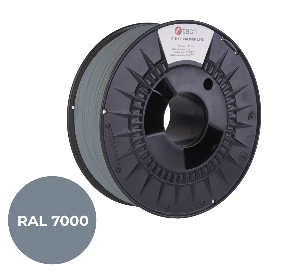C-TECH tisková struna PREMIUM LINE ( filament ) , PLA, veverčí šedá, RAL7000, 1,75mm, 1kg