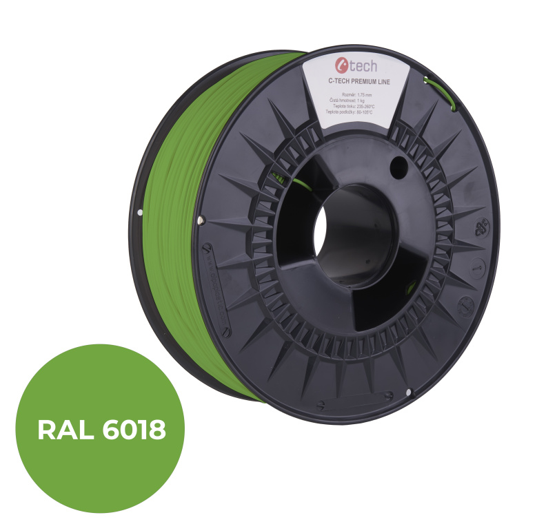 C-TECH tisková struna PREMIUM LINE ( filament ) , PLA, zelenožlutá, RAL6018, 1,75mm, 1kg
