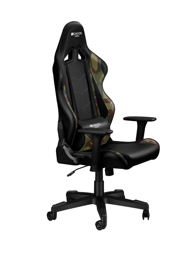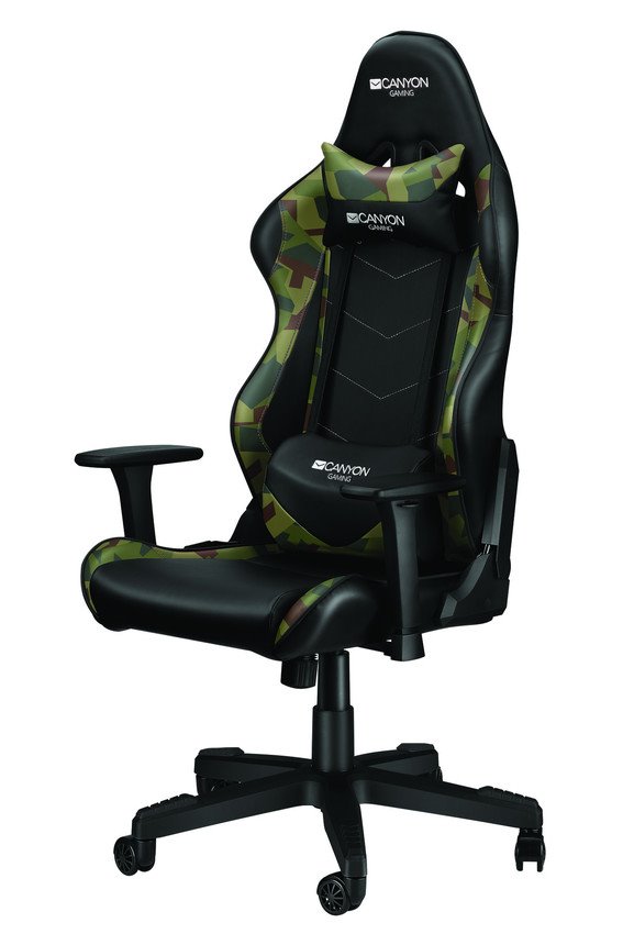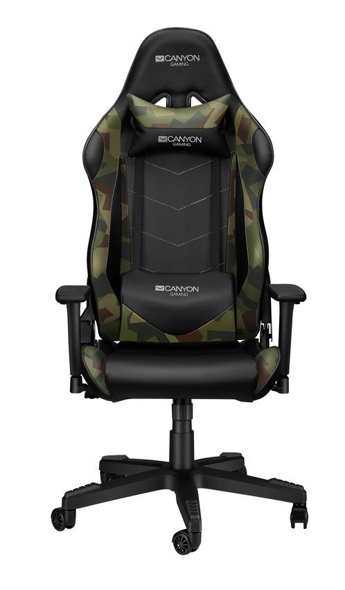 CANYON herní křeslo Argama, PU kůže, kovový rám, 90-165 °, 3D opěrka, plynový zdvih třídy 4, military