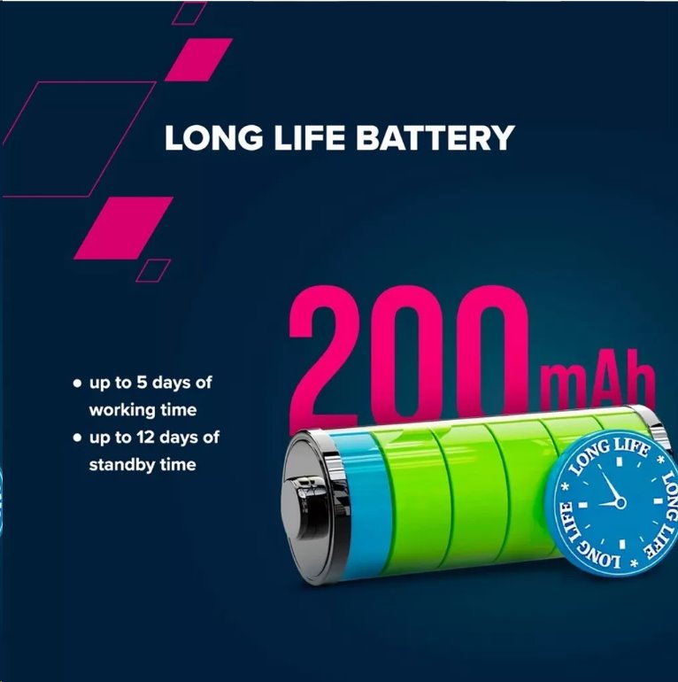 Chytré hodinky Canyon Easy mají spolehlivou 200mAh baterii, která
