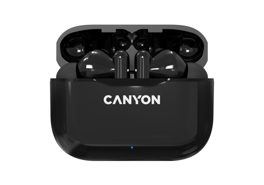 CANYON TWS-3 Bluetooth sportovní sluchátka s mikrofonem, BT V5, nabíjecí pouzdro 300mAh, cerná
