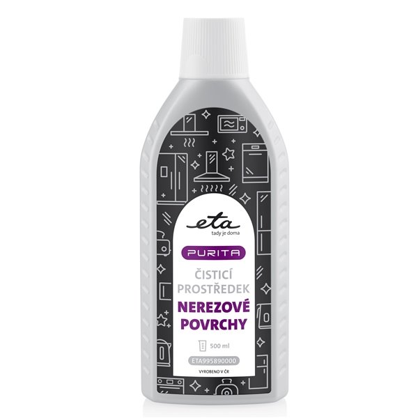 ETA Purita na nerezové povrchy je ideální pro sporáky, trouby, baterie či digestoře. Můžete jej použít i k základnímu čištění sklokeramických varných ploch. Nechte své spotřebiče zářit! Pravidelným používáním čisticích prostředků ETA Purita své spotřebiče zároveň chráníte před nepříznivými vlivy okolí a prodlužujete jim životnost. Objem praktické lahvičky je 500 ml. ETA Purita je vyrobena v České republice.