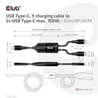 USB Type-C, Y charging cable to 2x USB Type-C max. 100W, 1.83m/6ft M/M