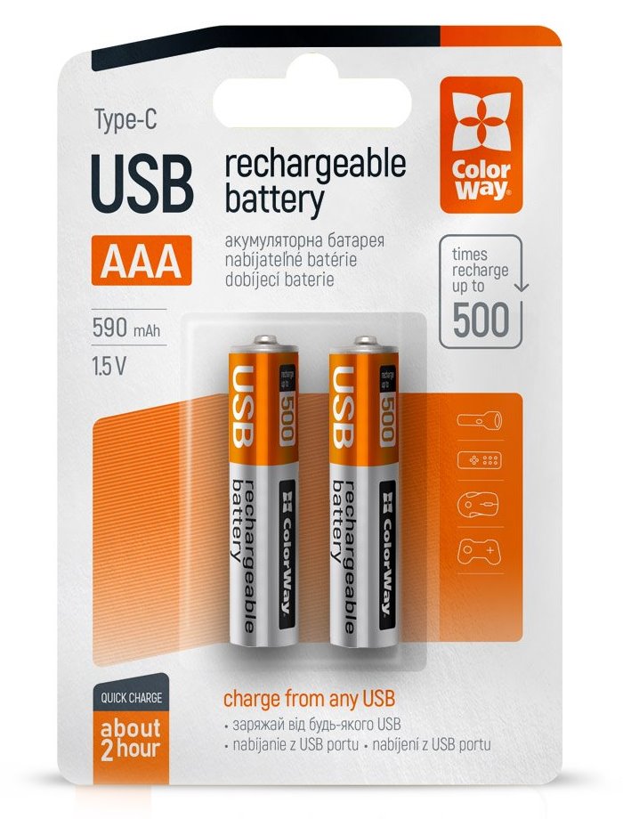 Podporují až 500 dobíjecích cyklů, takže nahradí stovky kusů baterií, pro které byste museli jít do obchodu. V souvislosti s tím šetříte nejen čas, ale také peníze a životní prostředí. Hlavní předností ColorWay AAA baterií je možnost nabíjení přes jakékoli zařízení s USB portem. Baterii stačí jednoduše připojit k USB portu v PC nebo notebooku a za 1 až 2 hodiny jsou baterie plně připraveny k provozu.