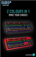 Profesionální mechanická klávesnice NEO+ series pro hráče počítačových her v českém a slovenském layoutu s celkem 22 módy barevného rainbow podsvícení a pětistupňovou regulací intenzity podsvícení. K dispozici je 12 multimediálních kláves.