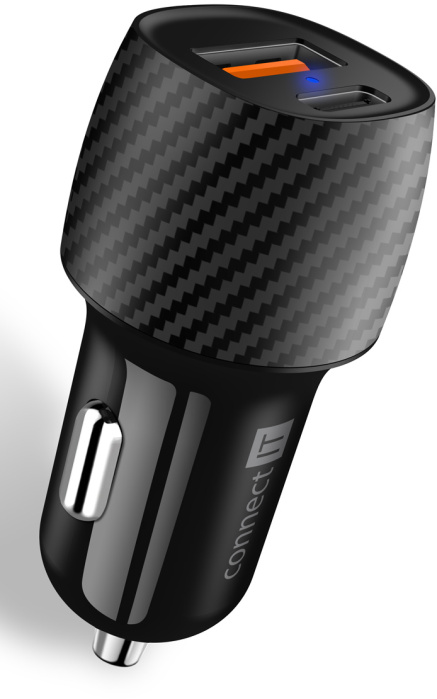 CONNECT IT InCarz PD +QUICK CHARGE 3.0 nabíječka do auta, 1x USB-A + 1x USB-C, 3 A, CARBON
