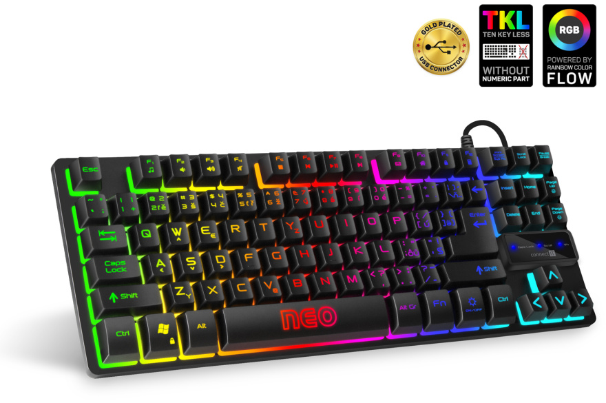 CONNECT IT NEO Compact klávesnice pro hráče , podsvícená, USB,