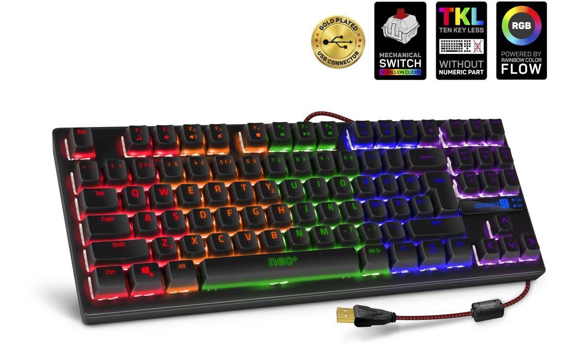 CONNECT IT NEO+ Compact mechanická herní klávesnice, RGB podsvícení , USB, (CZ +SK verze)