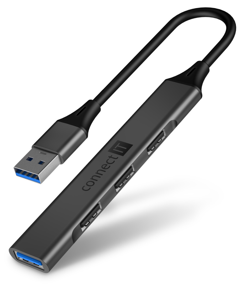 CONNECT IT USB-A hub, (1xUSB-A 3.0, 3xUSB-A 2.0), externí, ANTRACITOVÝ