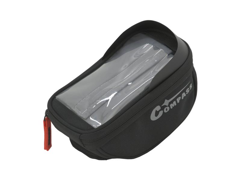 Vrchní kapsa je vhodná k umístění mapy, či mobilního telefonu až do úhlopříčky displeje 6,3". Fólie na kapse umožňuje ovládání dotykového displeje mobilního telefonu. Přední část je navíc doplněna o kšilt, který omezuje přímé sluneční záření a nechtěnné odlesky.