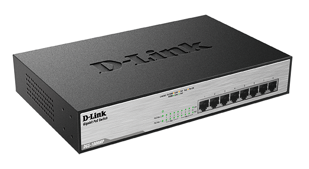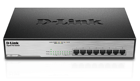 The DGS-1008MP features 8 x 10/100/1000BASE-T ports that support