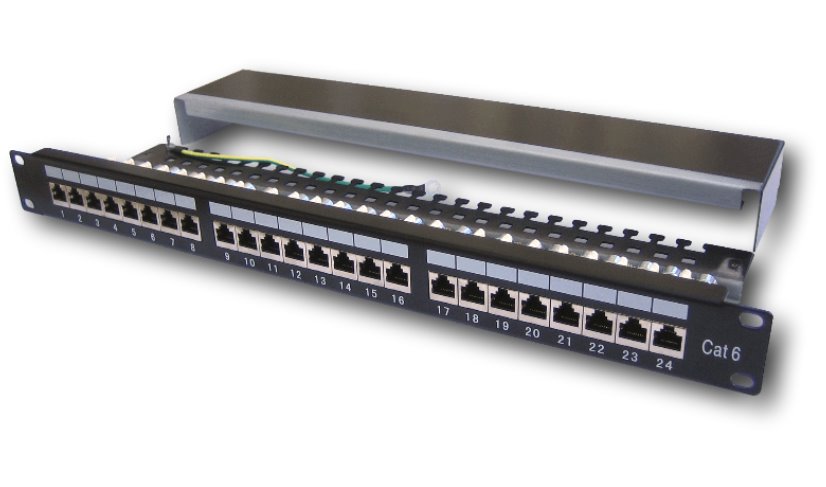 - 19" Stíněný patch panel určený pro montáž do 19" datových rozvaděčů.