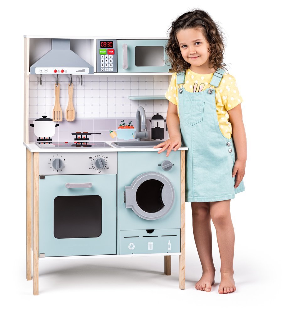Máte doma malého kuchaře nebo kuchařku? Udělejte jim radost jejich vlastní dětskou kuchyňkou Dakota od značky Woody. Zabaví se během vaření svých imaginárních jídel a rozvinou svojí dětskou fantazii. Kuchyňská linka navíc vydává různé zvuky a dokonce je vybavená světelnými efekty.