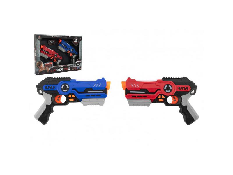 Užij si dokonalou akční hru doma i venku s těmito laserovými pistolemi. Vyzvi na souboj svého kamaráda a "sejmi ho" jako první. Laser hra pro dva hráče. Pistole vydávají světelné a zvukové efekty. Detekce střel až na 40 m. Tři světýlka na zbrani signalizují, kolik zbývá životů.