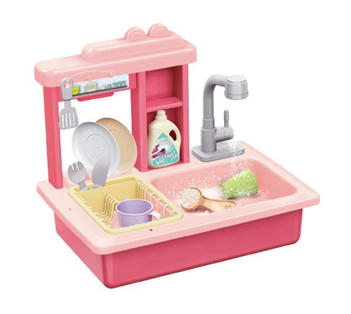 Dětský dřez na mytí nádobí TEDDIES s kohoutkem na vodu růžový