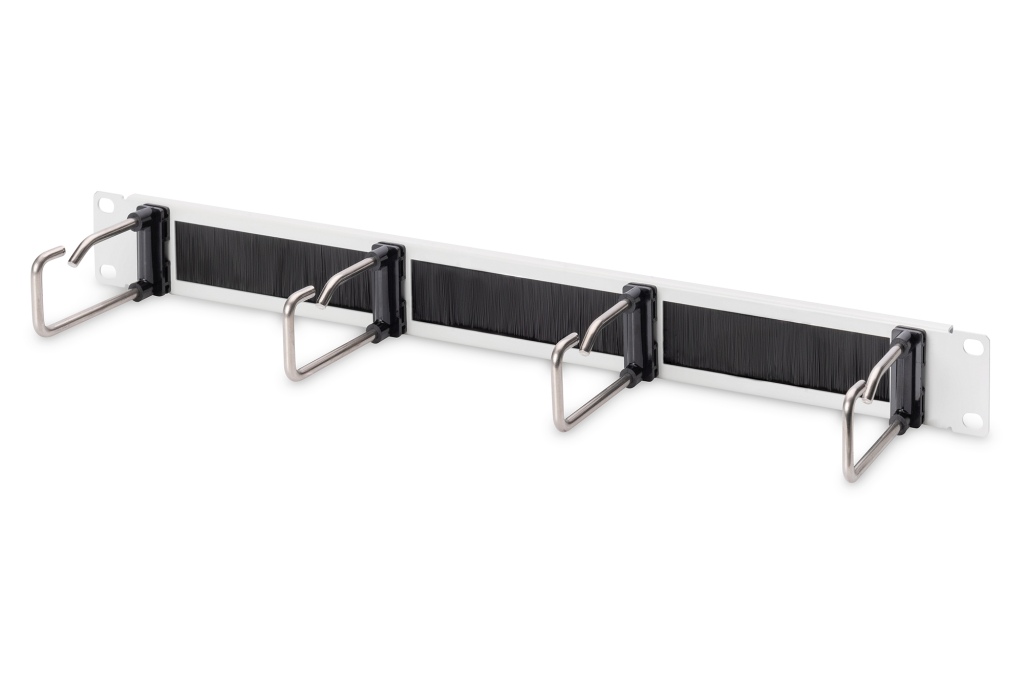 Digitus 1U kabelový spravovací panel s kartáčem 4x ocelové kroužky 40x75 mm, šedá (RAL 7035)