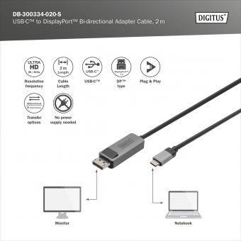 Obousměrný kabel adaptéru DIGITUS® USB Type C <=> DisplayPort