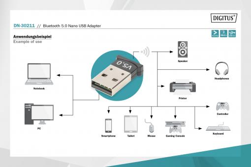 S adaptérem DIGITUS® Bluetooth USB můžete používat rychlý standard