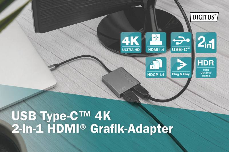 Pomocí adaptérového kabelu DIGITUS® USB-C na 2x HDMI můžete
