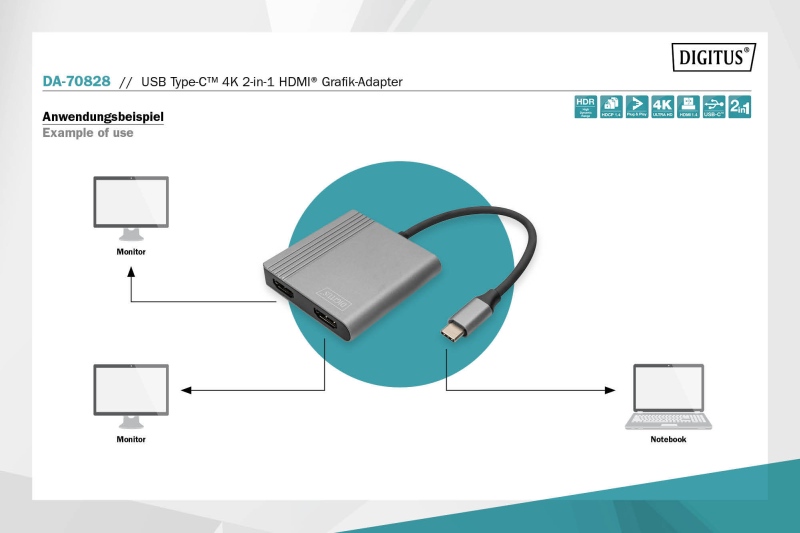 adaptéru DIGITUS® USB-C™ na 2x HDMI.