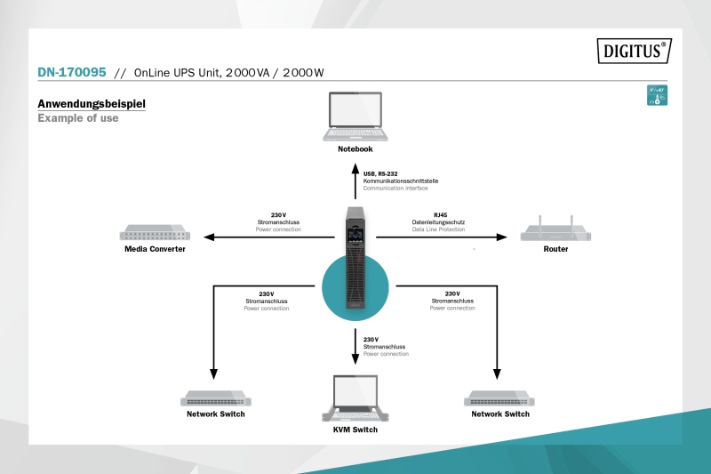 DIGITUS DN-170095 UPS OnLine, 2000 VA / 2000 W