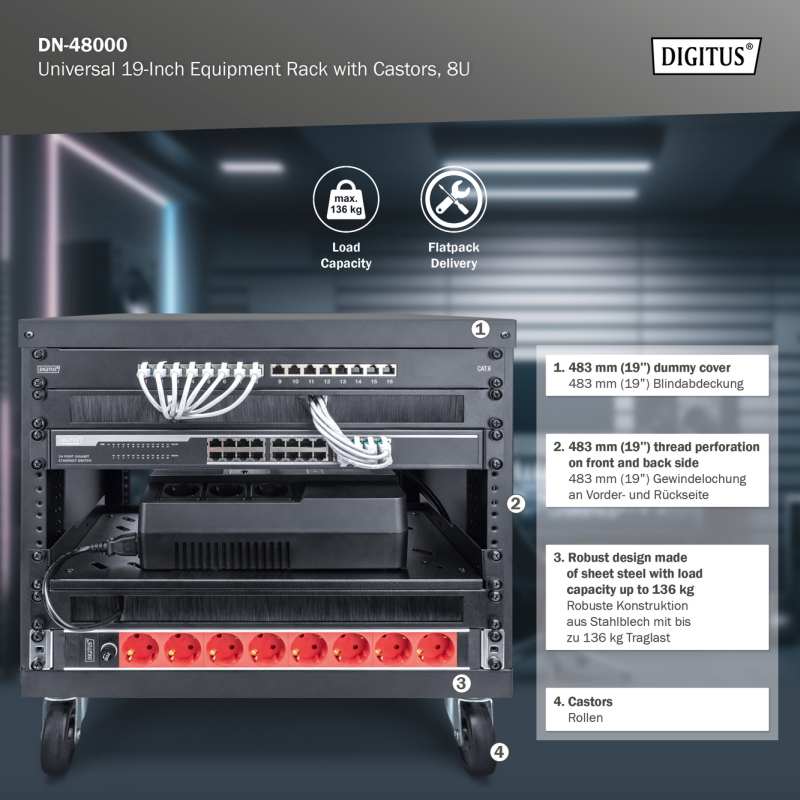 19" stojany od Digitus® jsou díky 19" závitovému děrování