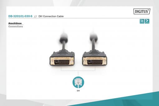 Digitus DVI propojovací kabel, DVI(24+1), 2x ferit M/ M, 3,0 m, DVI-D Dual Link, bl
