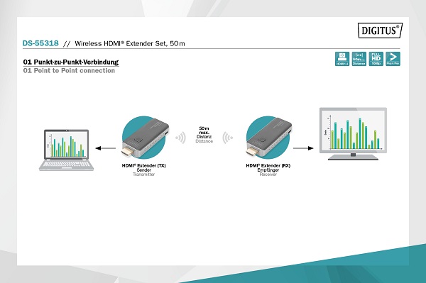 Bezdrátový přenos signálu HDMI až na vzdálenost 50 m (nerušený