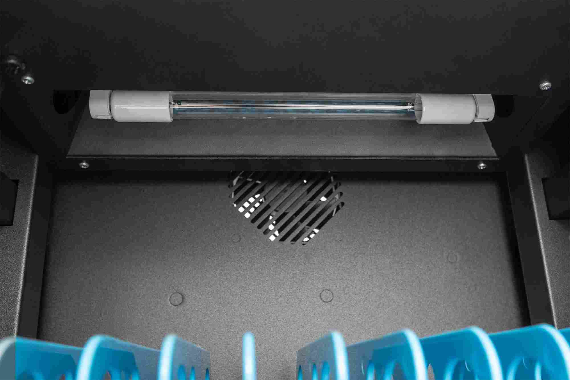 štěrbinami zajišťují aktivní chlazení skříně. Instalované UV-C