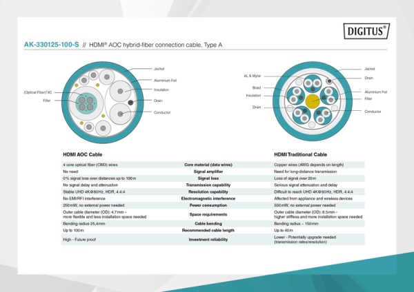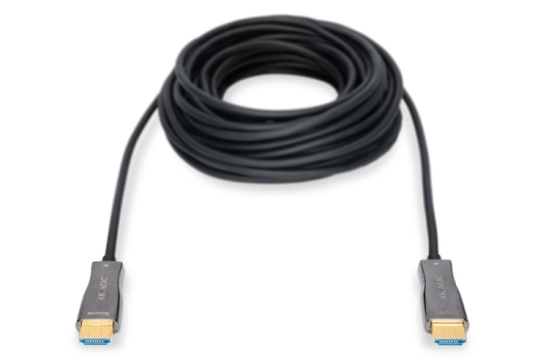 DIGITUS Připojovací kabel HDMI AOC s hybridním vláknem, typ A M/ M, 30 m, UHD 4K@60 Hz, CE, zlatá, bl