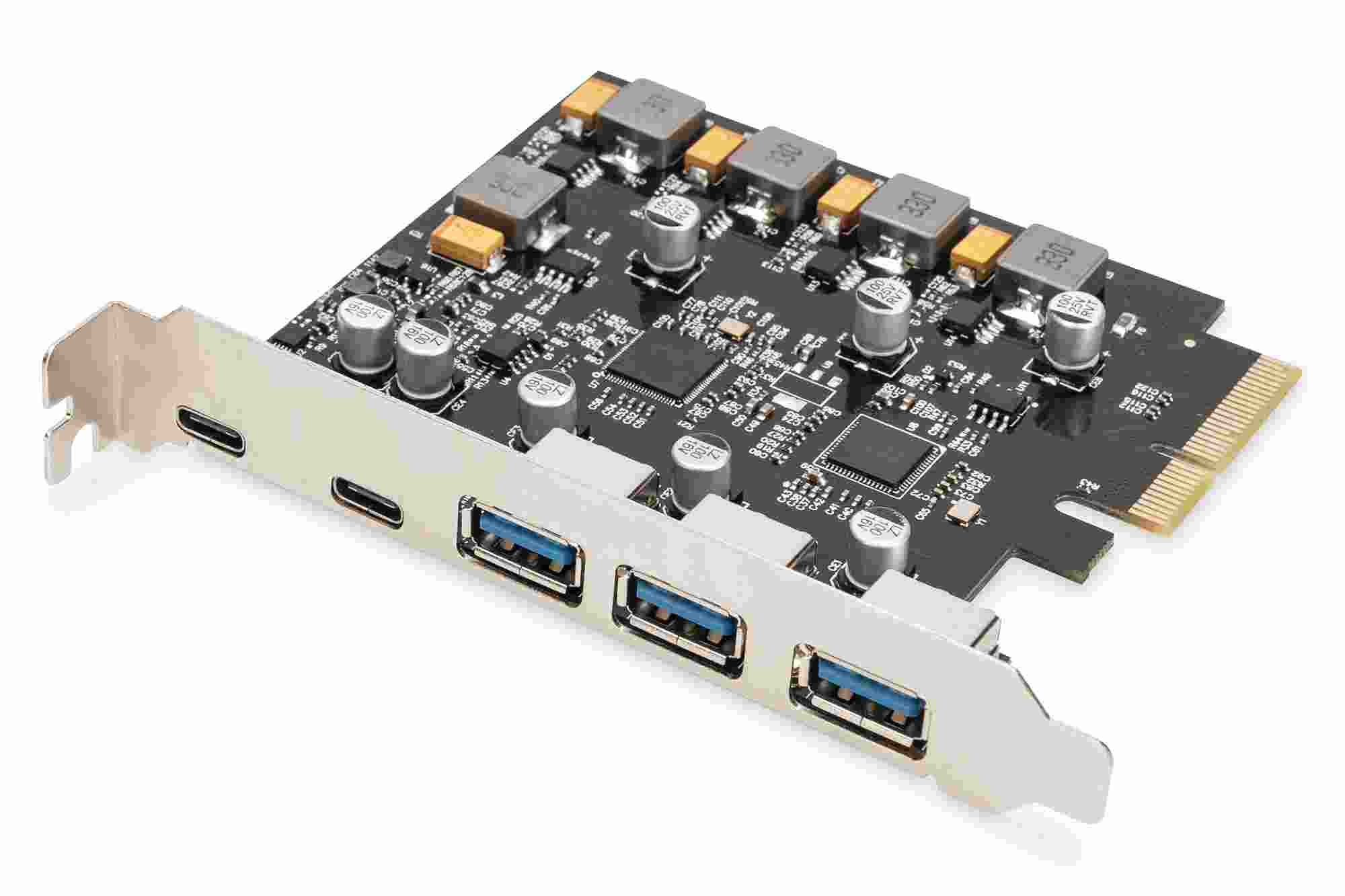Digitus PCI Express Card rozšiřuje PC o 2x USB-C a 3x USB A port. K