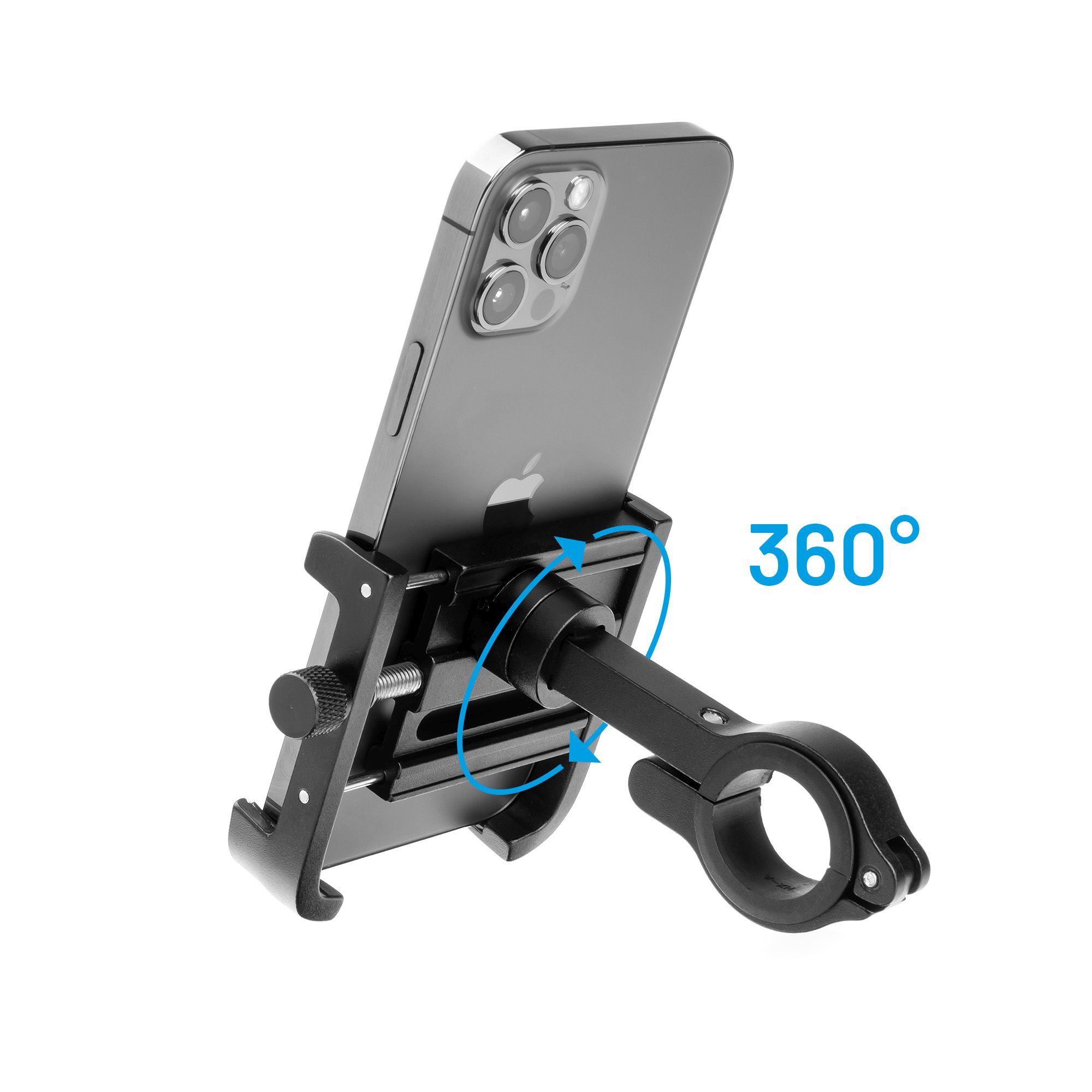 Držák má univerzální provedení, proto se do něj vejdou všechny telefony s úhlopříčkou od 4" do 6,7" a šířkou 5,4 až 10 cm. Vyrábí se z odolné hliníkové slitiny s Anti-UV vrstvou, která ochraňuje barvu před sluncem a vnějšími vlivy. Jelikož se na kleštích držáku nachází silikonové polstrování, nedojde v jejich sevření k poškrábání mobilu. Vyrazte do přírody nebo na výlet na kole či na motorce a nechte si do uší hrát oblíbené písničky. Zároveň se držák hodí, pokud se chystáte do méně známých míst. Spustíte si navigaci a máte ji neustále před sebou.