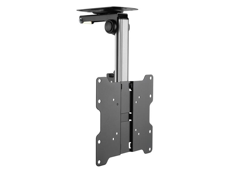Stropní polohovatelný držák na TV single Technické parametry: - Min. úhlopříčka obrazovky: 17" - Max. úhlopříčka obrazovky: 37" - Náklon: +0°/-90° - Maximální nosnost: 20 kg - Šířka: 220 mm - Výška: 265 - 400 mm - Uchycení: vodorovný nebo šikmý strop - VESA 75 x75 - VESA 100x100 - VESA 200x100 - VESA 200x200 - Barva: Černá - Materiál: Ocel…