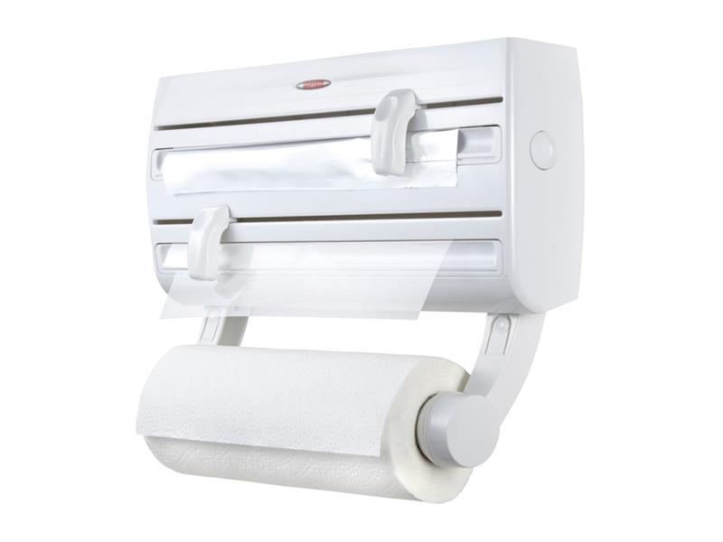 - Praktický zásobník na balící folie, papírové utěrky, alobal či sáčky na potraviny