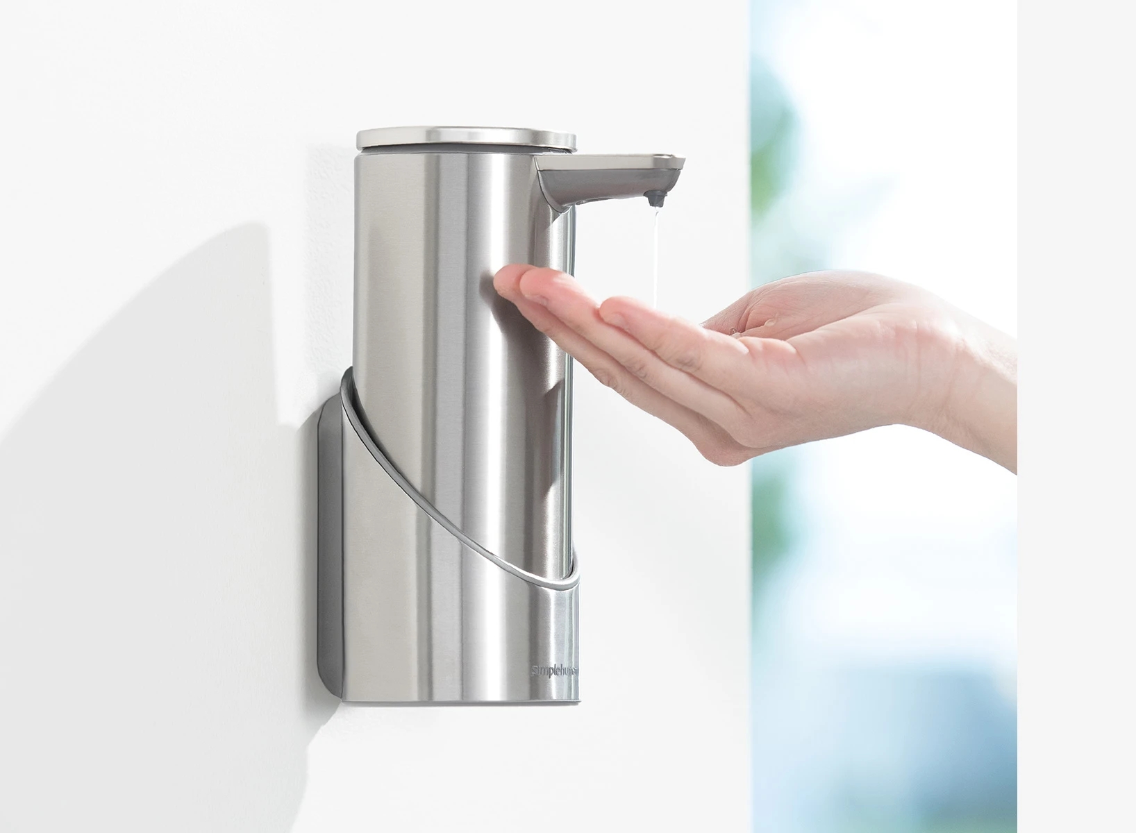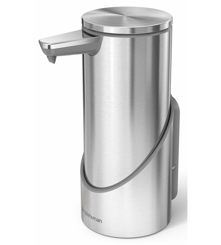 Nerezový držák pro elegantní a spolehlivé přichycení bezdotykového dávkovače ke každé stěně, kdekoli potřebujete rychlý a pohodlný přístup k čistým rukám po celý den. Vhodný pro všechny dobíjecí bezdotykové dávkovače mýdla / dezinfekce Simplehuman řady ST104x.