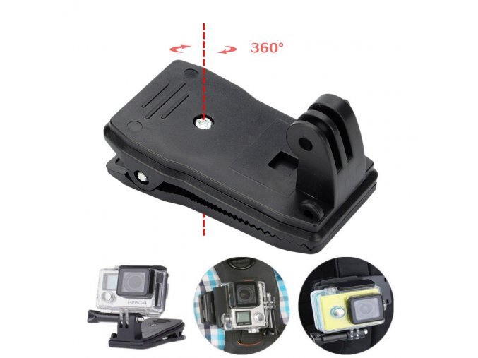 Klip má otočný podstavec s rozsahem celých 360°, takže si kameru můžete nasměrovat dle potřeb. Na klip můžete připevnit ještě praktický kloub pro naklonění kamery do více úhlů a vše se dotáhne speciálním šroubem.