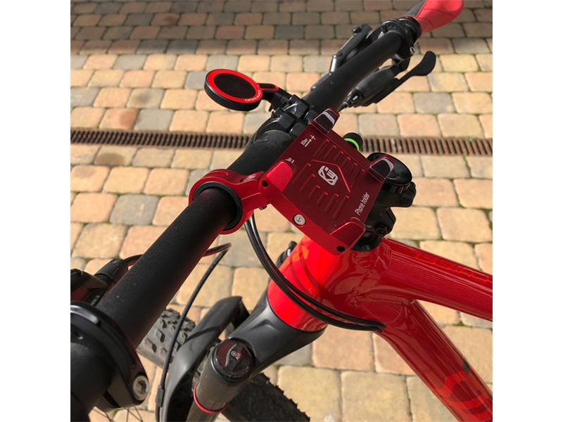 Univerzální hliníkový nastavitelný držák na trubku pro mobilní telefony, vhodný především pro použití na motocyklech a jízdních kolech. Technické parametry: určeno pro telefony šířky 60 - 103mm materiál: letecký hliník 7075 (červená barva) úchyt na trubku o ø 20 - 30 mm