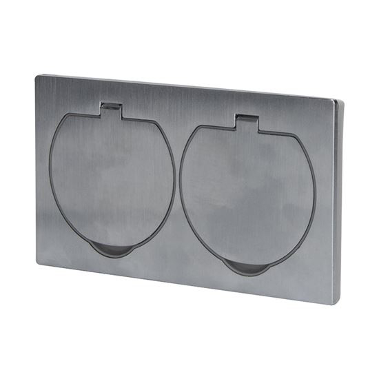 Zásuvka dvojnásobná uzemněná 2x (2P+PE) Technické parametry: - IP55 krytí pro mokré čištění nebo proti stříkající vodě - instalace do podlahy, pod omítku nebo do nábytku - vhodné pro venkovní prostory - terasy, pergoly, apod. - vrchní kryt z broušeného hliníku - pevné víčko s pružinou pro automatické zavírání - gumové těsnění ve víčku i pod…