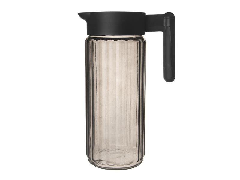 Džbán s uchem, výlevkou a plastovým otvíracím víčkem. Otočením střední části víčka uzavíráte a otvíráte otvor pro nalévání. Vlastnosti: - Materiál: sklo, plast PP. Max. 90 °C - Rozměry: objem 1,5 l, pr. 9,5 cm, v. 24,5 cm - Lze mýt v myčce