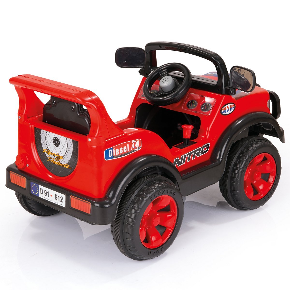 Elektrické auto značky Dolu jako stvořené pro vyjížďky v náročném terénu. Kombinací funkčního jednobodového plynu s plynovým pedálem je bržděný brzdovým systémem, který je automaticky aktivován pro bezpečnost vašeho dítěte. Autíčko nabízí odnímatelné příslušenství pro snadnou manipulaci a funkci vpřed a vzad. Auto je vybaveno bezpečnostním pásem, elektronickým klaksonem a předními světly. Doba nabíjení je 12 hodin (při prvním nabití 16 hodin). Doba jízdy 2 - 3 hodiny. Kola jsou z tvrdého plastu ajsou doplněná o středový gumový pás.