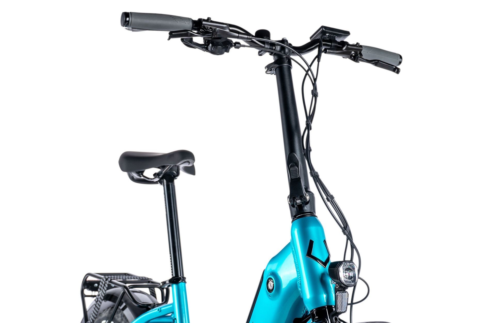 Kvalitní přední LED osvětlení vám posvítí na cestu i za tmy. Pokud cestujete s taškou, jistě oceníte pevný nosič na zadní části kola.