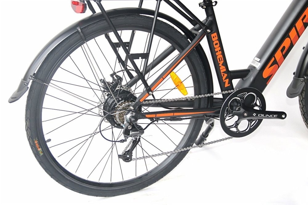Využíváním pohonu na baterii si zajistíte pomocnou energii navíc, kterou využijete zejména při prudkém stoupání. Výkonná uzamykatelná baterie s kapacitou 16 Ah je uložená v rámovém profilu a dobije se za 4 až 6 hodin pomocí přiložené nabíječky.Systém pohonu je řešený 5stupňovým pedálem s přehlednou LCD ovládací jednotkou. Vynikající zpracování i jízdní vlastnosti, vyvážená konstrukce, nízká hmotnost 22 kg a vysoká nosnost až 110 kg dělají z tohoto silničního kola perfektního parťáka pro krátké i celodenní vyjížďky po různorodých cyklostezkách a silnicích, během kterých vás Spirit Bohemian Sport nikdy nenechá ve štychu.