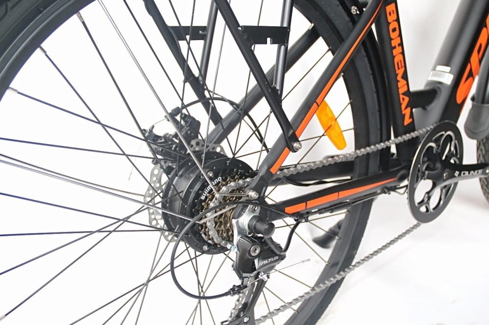 Elektrokolo Spirit Bohemian Sport vám dá mnohem větší požitek z jízdy, pomůže vám dojet dál bez obav z únavy a doveze vás i do náročnějšího terénu. Překonejte první, druhý i pátý kopec a v cíli se můžete pokochat i bez lapání po dechu. Elektrokolo má maximální dojezd na jediné nabití až 120 km a je vybavené výkonným motorem Bafang 36V/250W BLDC s planetovou převodovkou Shimano Acera v zadním kole, která vám poskytne spolehlivou podporu při stoupání. Funkce motoru je aktivována šlapáním, které je snímáno speciálním senzorem umístěným ve šlapacím středu, kdy Spirit Bohemian Sport dosahuje maximální rychlosti až 25 km/h.
