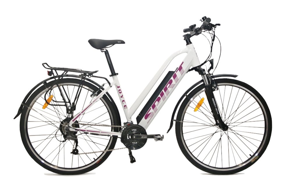 Trekové elektrokolo Spirit Joyce vám poskytne mnohem větší požitek z jízdy v terénu i ve městě a pomůže vám dojet dál bez obav z únavy. Je opatřeno blatníky, světly, bočním stojánkem a sportovním sedlem Selle Royal, takže oproti klasickým horským nebo silničním kolům poskytuje maximální pohodlí na delších cestách a výletech. Elektrokolo se pyšní až 120km dojezdem na jediné nabití a je vybavené 250W motorem Bafang BLDC s planetovou převodovkou v zadním kole, která vám poskytne spolehlivou podporu při stoupání. Funkce motoru je aktivována šlapáním, kdy kolo dosahuje maximální rychlosti až 25 km/hod.