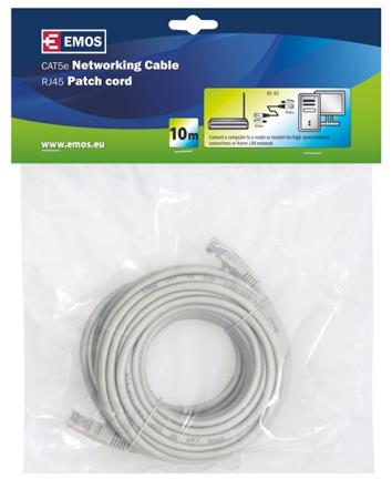 Emos Patch kabel UTP, CAT 5e, AWG26, PVC, šedý, 10m