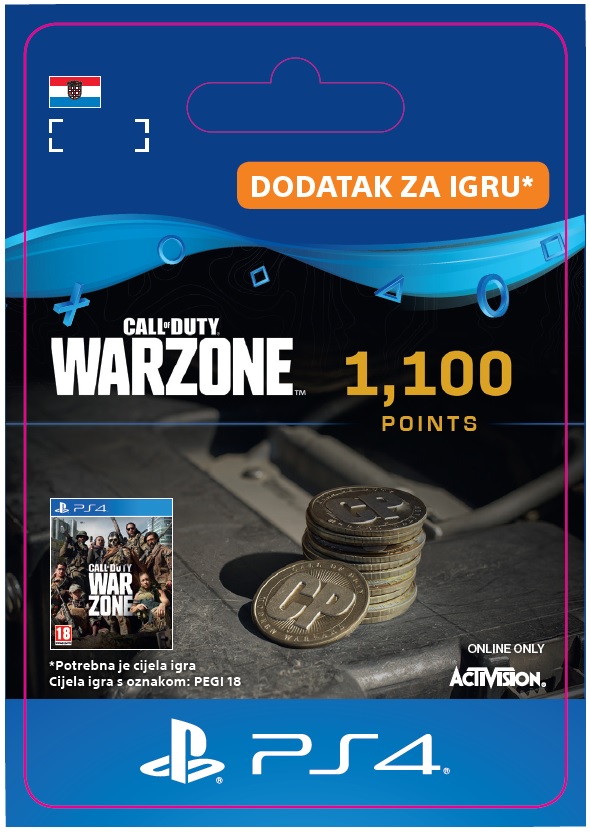 1,100 CALL OF DUTY® POINTSFull game requiredThis bundle includes 1,000 + 100 Bonus Call of Duty®Points. Call of Duty® Points (CP) are the in-game currency that can be used to obtain in-game content for use in Warzone™ game modes.Call of Duty® Warzone™ game required. Free to download.CP purchased may also be used to obtain in-game content in…